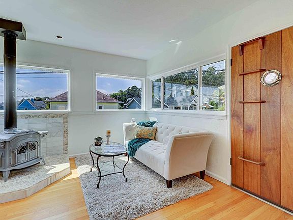 YOUR BEACH LIFESTYLE STARTS HERE! Enjoy gorgeous sunsets and peeks of the ocean from your very own crows nest. A short walk takes you to the harbor and scenic lighthouse, steps from local restaurants, coffee and the beach. You'll appreciate the flexibility this home affords. Two bedrooms, each have their own private bathrooms and are separated by the main living space; they both open out onto the back deck. The floorplan is open and light, with a versatile living area, a cozy fireplace in the living room and plenty of windows to enjoy the harbor views and sounds. A beautiful kitchen features newly painted cabinets, a new gas stove and dishwasher, a breakfast bar and dining area. The downstairs finished garage space is quite practical with plenty of storage, and custom tile design. Entertaining is a pleasure on the front deck with built-in seating, access to the low maintenance backyard and hot tub. All the amenities you need just minutes to the sand! Possible COUNTY vacation rental!