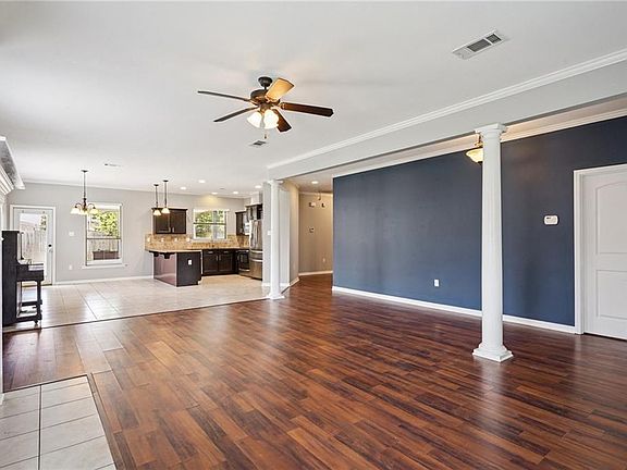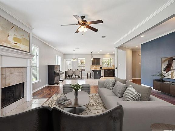 High-demand neighborhood in Mandeville School Districts. Only 15 minutes from the foot of the causeway and right down the street from Pelican Park, Fontainebleau State Park, and the Tammany Trace! This 1,831 sq ft home incudes a wide open floorplan with wood floors, recessed lighting and a wood burning fireplace. The kitchen features granite counters, stainless steel appliances, breakfast bar seating & a separate dining area. The primary suite includes a garden tub, separate shower, granite counters, double vanity and large walk-in closet. Fully fenced yard with a large covered patio. The nearby neighborhood pond, greenspace, and playground area provide for a unique park-like setting to enjoy. High & Dry in Flood Zone C!