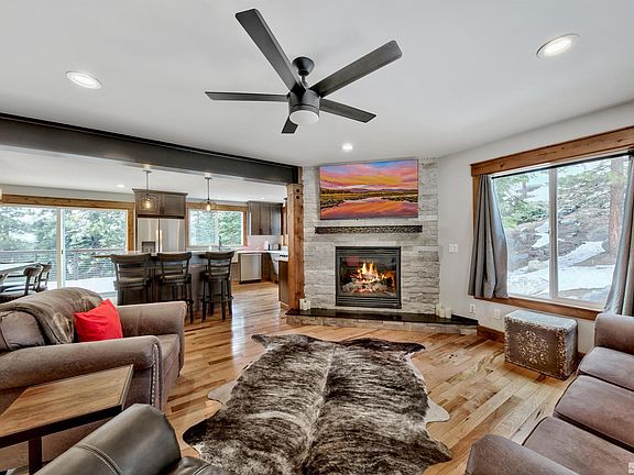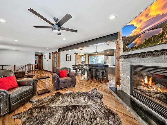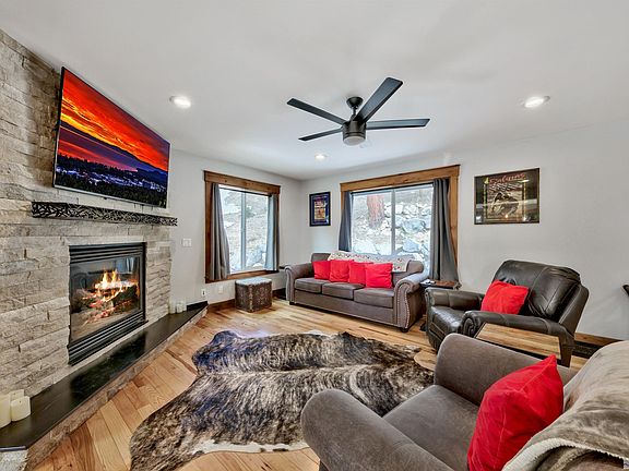 This beautifully updated 3-bedroom, 3-bathroom home is nestled among tall pine trees in Upper Kingsbury, bordering US forestry land. The main living area is open and extends onto a deck off the kitchen, perfect for entertaining with mountain views. The kitchen boasts new cabinets, stainless steel appliances, and striking quartz countertops. Hardwood floors run throughout the home, complemented by a cozy gas fireplace and a convenient laundry room., The bedrooms are carpeted for comfort, and the bathrooms feature tiled flooring. Upstairs, there's a master bedroom with a stylish en-suite bathroom showcasing subway tiles and tiled floors, along with a guest room. Downstairs, the primary master bedroom offers a luxurious en-suite bath with a spacious soaking tub, separate shower stall, and heated tile floors. This master bedroom includes two walk-in closets and direct backyard access for peaceful relaxation. The location is ideal, close to Heavenly Ski Resort, Edgewood golf course, casinos, mountain bike trails, and the stunning Lake Tahoe. This Property has approved plans for a garage.