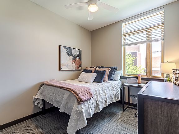 - Exterior features: Barbecue, Community Wide WiFi, Exterior Type: Student, Granite Countertops, High-End Appliances, Multiple Resident Lounges with TVs, On-Site Maintenance, Starbucks Coffee Machine