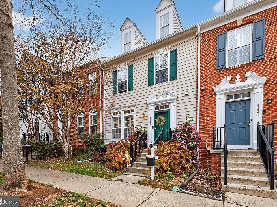 Nestled in the highly desirable Lakelands community, this inviting interior row townhouse offers 3 bedrooms, 3.5 baths, a detached garage, and more than 2,800 square feet of comfortable living. Inside, the warm atmosphere is felt instantly through beautiful hardwood floors, crown molding, recessed lighting, and generous natural light that moves easily from room to room. The formal living room features classic window shutters, while the dining area stands out with its tray ceiling and updated light fixture. The kitchen is a chef's delight, designed with two-toned cabinetry, stainless steel appliances, including a new gas range installed in 2024, upgraded countertops, and an island with bar seating. Perfect for entertaining or everyday living, the adjacent breakfast area flows into an inviting family room complete with a cozy gas fireplace and French doors that open to the rear deck for outdoor enjoyment. A conveniently located powder room completes the main level. Retreat to the spacious primary suite where hardwood floors, ample closet space, and a beautifully updated en suite bathroom await. The luxurious bathroom features a dual sink vanity with a granite countertop, a tiled walk in shower with a frameless glass door, and a relaxing soaking tub. Two additional bedrooms share a full hallway bath with a tub and shower combo and an updated vanity. A dedicated laundry room on this level adds ease and practicality. The lower level expands the living space with a generous rec room ideal for movie nights, a full bathroom, and two versatile flex rooms that work perfectly as a private office, guest bedroom, kid’s playroom, or home gym. Step outside to the private deck and enjoy an evening under the stars and the convenience of the detached two-car garage with rear entry. For added comfort, the upper and lower HVAC units were replaced between 2019 and 2021. Residents of Lakelands enjoy incredible community amenities including a clubhouse, pool, tennis and basketball courts, fitness center, and beautiful lakes, parks, and trails throughout the neighborhood. The home is just moments from Downtown Kentlands with Whole Foods, Market Square, and a variety of shopping and dining options. This is an opportunity you will not want to miss.