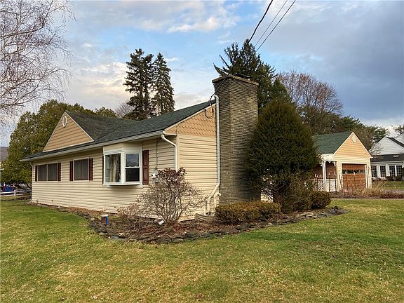 OPEN HOUSE!!! Saturday, April 5, 11:30 am to 1:00 pm! Spacious Ranch-style home on a sought-after side street in North Hornell. Cleveland Avenue! A circular blacktop driveway allows for easy in and out. Enter a foyer area with a large living room/dining room combo. Focal points are a span of windows on one side, the opposite is a bay window with a shelf, and in between there is a wood-burning fireplace. The main floor also has a good-sized kitchen with a back patio exit, and 4 bedrooms, including a BIG primary bedroom with a full bath en suite, office space, and 2 other full baths. The lower level entry room is a good size with storage closets and shelves. There is a half bath and two finished rooms, including a bar area. The utility room is spacious and has washer/dryer hook-ups. There is a large back patio with a pergola featuring a semi-shaded area for relaxing. Nice back yard.