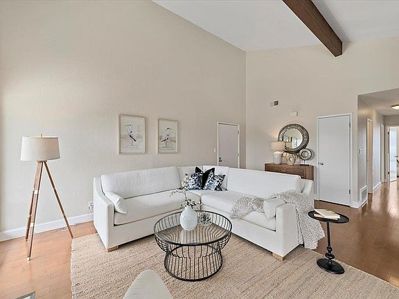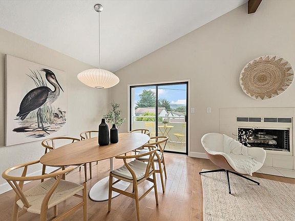 Welcome to this charming 2-bedroom, 2-bathroom home right in the heart of picturesque Half Moon Bay. With 1,028 sq ft of spacious living space, this residence offers a cozy and inviting atmosphere. The kitchen is well-equipped, featuring abundant granite countertops, dishwasher, french door fridge, lots of storage and a large pantry making it perfect for culinary enthusiasts. The open plan living room, with its soaring open beam ceiling and wood flooring, provides a warm and stylish setting, enhanced by a welcoming fireplace. The generous dining space easily accommodates a large table ideal for entertainers. Both bathrooms have been attractively remodeled featuring modern vanities and Toto toilets. Convenient amenities include a large indoor laundry with abundant built in storage, and 2 dedicated spaces in the secured underground parking garage with ample room for extra storage. The shared common area is directly accessed from the unit via the rear deck and there's also a private deck out front ideal for morning coffee or an evening beverage while enjoying the sunset.