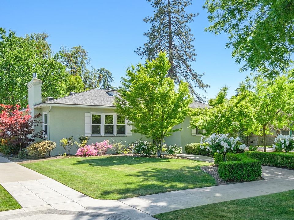 Welcome to this quintessential slice of California charm. This picturesque home sits on the corner of Michigan and Wilson, two desirable Fresno High streets. Lush landscaping and intricate architectural details of the 1940's make this charming three bedroom home one not to miss. Heading inside, one is greeted by an atmosphere of warmth and hospitality. The interior is a testament to thoughtful design and meticulous attention to detail. Sunlight streams through the windows, casting a golden glow upon the polished hardwood floors. The updated kitchen with granite counters and stainless steel appliances will be sure to please the discerning chef. Living spaces include a spacious livingroom with fireplace, a formal dining room and an intimate covered patio overlooking a shaded back yard. The detached two car garage is accessed from Wilson Ave and has an attached carport providing yet another off street parking option. Call your Realtor to see this one today.