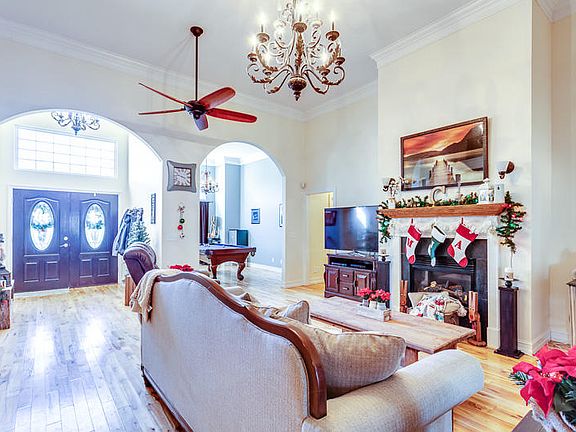 Gorgeous country setting - privacy & convenience. 14' ceilings - very open. Ranch 4BR/3BA, 3-car garage on 4.29 acres.16.7x32.6 covered back porch and stone paver patio Real stucco, freshly painted exterior and interior. Split bedrooms layout. Refinished hickory Hdwd/tile thru out. 2 FPs, stacked stone. Master bath, 2 sinks, tile shower, whirlpool, Walk-in closet. Electric vehicle charger. Whole house water filter and conditioner Fabulous kitchen, dbl ovens, stainless steel commercial grade appliances. New subway tile bksplsh, granite ctr tps, Huge island w/eat-in bar. Built-in refrigerator. Custom cabinets w/automatic close & moldings. Pull out pantry. Professional landscaping.