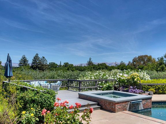 Amazing private retreat in the heart of the Silicon Valley designed by award winning architect Ernest J. Kump. This rare 51,802 Sq. Ft. Woodland Acres lot features breathtaking views and quiet serenity. This 2 bedroom 2 bath extends 2403 Sq. Ft. with two spacious master-suites. This home includes a den that can be utilized as a 3rd bedroom and a large laundry room that can be converted into a 3rd bathroom. The backyard is meticulously landscaped with a gorgeous pool/spa with a waterfall that feels like an escape into a fantasy. This luxurious cabin showcases stunning cedar walls throughout the home and soaring vaulted ceilings. The pool house with two rooms currently is utilized as an office and storage space but would also make a wonderful art studio or workshop. The Kitchen and Master Bathroom were remodeled in 2008. This was the original home of Dr. Calvin C. Flint of Flint Center and has only had two owners.