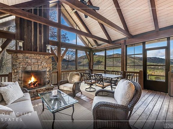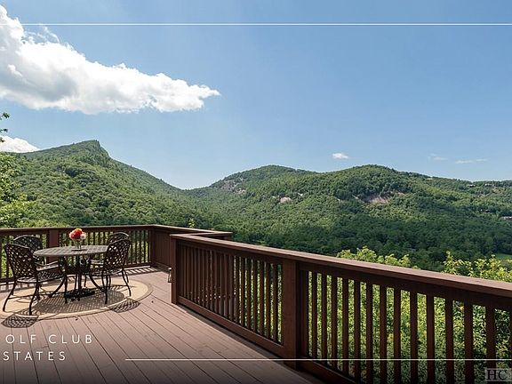 Perched high above Sapphire Valley, this stunning mountain retreat offers uninterrupted views of Bald Rock, Big Sheepcliff and Cow Rock Mountains. Set within the gated community of The Country Club of Sapphire Valley, this home blends mountain charm with thoughtful design and craftsmanship. The main level features a welcoming living room anchored by a beautiful stone fireplace, an open kitchen with granite countertops and a central island, and a dining area perfect for gatherings. A large mudroom with additional pantry adds to the home's practicality. Step into the screened porch with a wood-burning fireplace or the enclosed sunroom, which offers ever-changing mountain vistas. The primary suite on the main level offers two walk-in closets, an ensuite bathroom, and a private deck, combining comfort with serene mountain views. Upstairs, a loft provides a flexible space for a sitting area, workout room, or hobby studio. The lower level is perfect for guests, with two bedrooms featuring ensuite bathrooms and a shared deck. The spacious living and game room features a full bar and covered deck space. Throughout the home, fine detailing is evident in crown molding, hardwood floors, and thoughtful finishes. The exterior is equally impressive with boulder walls and steps encircling the perimeter. The gated circular driveway and fully fenced front yard enhance privacy while providing a secure play area. The generator and encapsulated crawlspace ensure comfort and peace of mind. Offered unfurnished and move-in ready, this home features multiple outdoor spaces designed to take full advantage of breathtaking mountain views. Located in the desirable Golf Club Estates community, Sapphire Valley amenities are available but optional, allowing for a serene or active lifestyle. This home offers the perfect balance of beauty, comfort, and functionality for either a full-time residence or mountain getaway. Virtually staged photos are included to showcase the potential of the property.