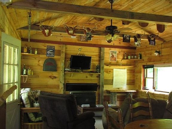 Cabin and 2+ acres with Lincklaen State Forest on 3 sides of the property. Hunt, hike or just sit around the fire. Located close to NY-26 for easy access. Great for hunters! The cabin is two rooms. One room has bunk beds and the other room contains the living room and kitchen. Nicely finished, the living area has a propane wall mount heater and the cabin is wired for a generator. The kitchen area has a propane refrigerator, a propane stove and a nice griddle. Imagine the meals you can prepare while roughing it. This property is unique due to location. It borders the state land on 3 sides but the forth side is private land. In this case it is a field with hay growing in it.