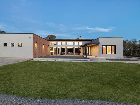 Welcome to a highly sophisticated escape nestled in the heart of Texas Wine Country, just one hour from Austin. This 14+ acre retreat with Pedernales River access harmoniously blends contemporary architecture with the natural beauty of the Hill Country, offering both serene seclusion and endless adventure. Completed in 2023, this 3,000 sq. ft. modern masterpiece showcases a timeless double-wing floor plan with 4 bedrooms, 3.5 baths and unparalleled outdoor living. Soaring floor-to-ceiling windows invite natural light while framing sweeping views of the surrounding landscape. The gourmet kitchen is a chef’s dream, featuring GE Monogram commercial-grade appliances, a waterfall island, oversized walk-in pantry, two 148-bottle wine refrigerators, and even a built-in pet hydration station. Dual primary suites ensure privacy and comfort, complemented by a third guest suite and a versatile fourth bedroom ideal as an executive office or playroom. The Owner’s Retreat is a true haven — complete with a customized walk-in closet and direct laundry access, a spa-inspired bath featuring a volcanic limestone soaking tub and glass-enclosed wet area. Designed for resort-style living, the outdoors are equally spectacular. A sparkling oversized lounge pool, jetted spa, and outdoor shower invite relaxation, while the expansive brick fireplace and outdoor TV create the perfect backdrop for al fresco dining and entertaining. Additional highlights include a 30,000-gallon rainwater harvesting system, private well, current ag exemption, no HOA, and the option to acquire additional acreage. Just 20 minutes to shops and dining on Fredericksburg’s famous Main Street, walking distance to wineries and the historic LBJ Ranch. Don’t miss this rare blend of modern luxury and privacy in the heart of the Texas Hill Country.