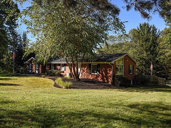 This one of a kind ALL brick HUGE ranch sits on 2.29 acres of level land with privacy. Note the room sizes of this house with an open living room/dining room with a see thru stone fireplace into the kitchen with large picture windows. The Cherry kitchen has a mobile center island, granite counter tops, four pantries and all stainless steel appliances with a double oven. The (30 x 12) screened in sun porch has windows looking out to the park like BEAUTIFUL land, with slate flooring. The master suite is in a private area with vaulted ceilings, a separate den with an entrance form the outside for the home office use client or just having access outside. The master bath has a bidet, tub and dressing area. The 2nd bedroom has a private bath & the additional two bedrooms have a hall bath. The lower level has two HUGE game rooms, a 9 ft bar and a stone fireplace, both walking out to the yard, slate patio and hot tub. There is an elevator but it can easily be removed if not needed.