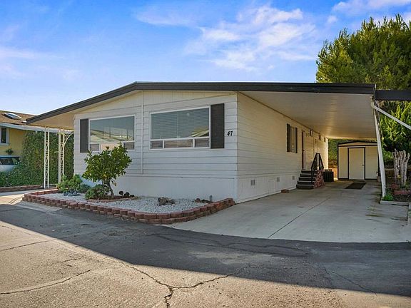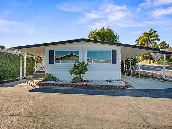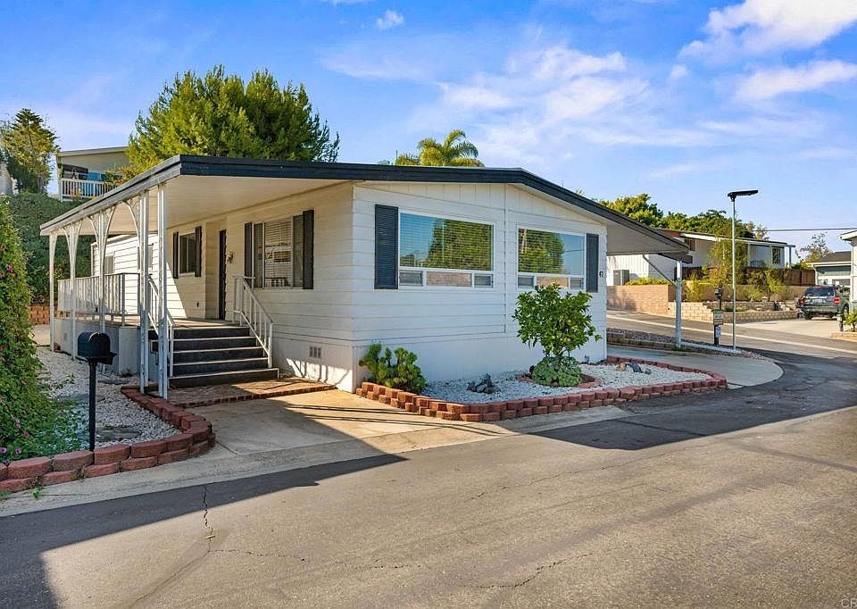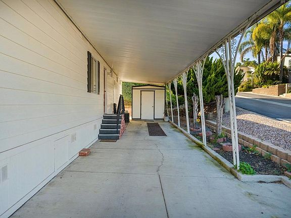 Welcome to the vibrant 55+ resident owned mobile home community of Park Encinitas! This move in ready 2-bedroom, 2-bathroom corner lot home offers a comfortable and convenient lifestyle. The home is nestled in a 55+ Age-Restricted Community, ensuring a lively and engaging environment. The community offers a pool and spa for relaxation, and a clubhouse equipped with a library, billiards, kitchen, shuffleboard, and gym for your leisure and convenience. The interior of the home has been freshly painted and is equipped with air conditioning, laminate flooring in the main living areas, carpet in the bedrooms, and all necessary appliances, providing a hassle-free living experience. The property also includes a large front deck, a side yard, a 2-car tandem covered parking spot and a detached shed for additional storage.