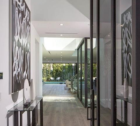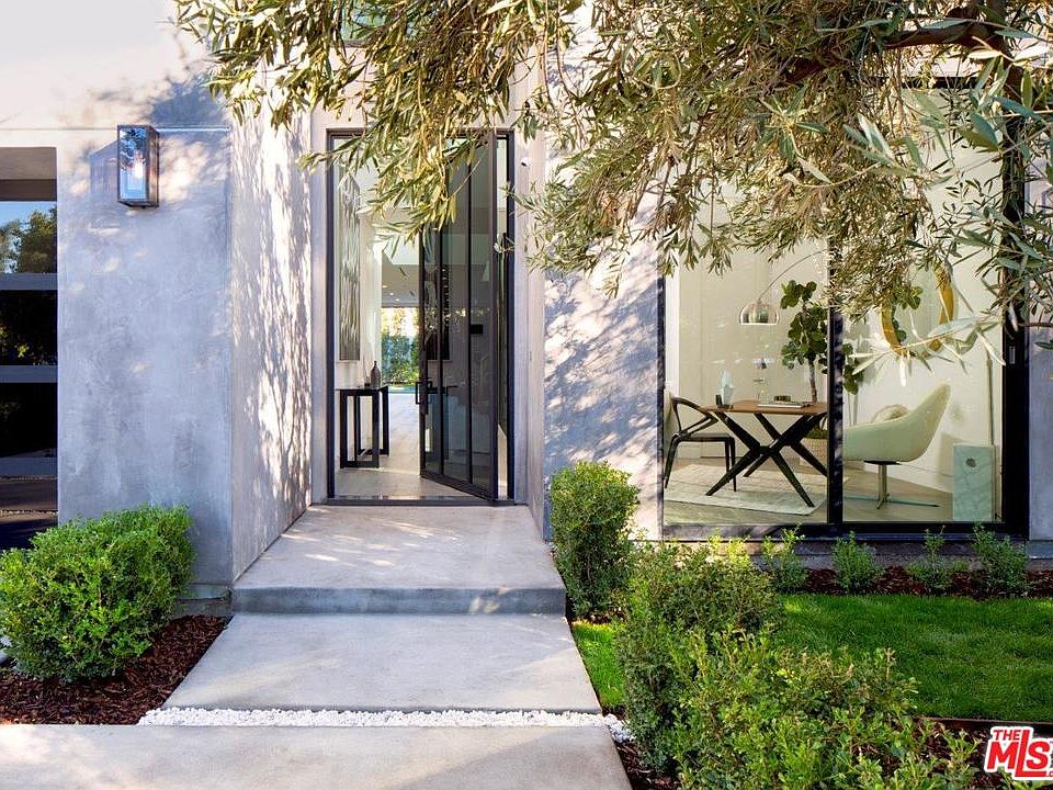 This exceptional, newly constructed, modern home is flooded with natural light, surrounded by mature landscaping, and is the ultimate in tranquility and privacy. A 2-story bridged entry with a polished steel floating staircase and open floor plan opens to the 5-bedroom, 5.5-bathroom home. Bardiglio marble fireplaces, engineered Oak hardwood flooring, and custom Fleetwood sliding doors throughout marries sophisticated living with gracious comforts. Designed with entertaining in mind, the chef's kitchen with double ovens, built-in pantry, and breakfast area opens to a family room and outdoor barbecue, pool, spa, and covered patio. Upstairs, the stunning master suite includes a fireplace, walk-in closet, porcelain tile bathroom, and outdoor veranda. A striking rooftop deck with views of the Hollywood Hills, Control 4 home automation, built-in speakers, garage with direct entry, and nine security cameras complete the home. A stone's throw from shops and dining along Melrose Avenue.