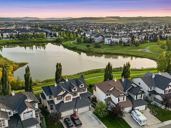 Welcome to 444 Silverado Range Place SW, a stunning family home set on a quiet cul-de-sac in the heart of Silverado. The front porch makes an immediate impression, opening to 9-foot ceilings, walnut hardwood floors, and a bright front office with French doors. At the heart of the main level, a custom travertine fireplace adds character, while oversized windows capture sweeping views of Silverado’s most scenic green space. The kitchen is both functional and elegant, featuring granite countertops, a large island, corner pantry, new appliances, and under-cabinet lighting. The dining area opens to an oversized patio with glass panel railing, a convenient BBQ nook tucked around the corner, and unobstructed south-facing backyard views. Upstairs, teardrop wrought iron railing and plush carpet lead you to a comfortable family room filled with natural light. Two spacious bedrooms, each with large closets, provide ample room for family or guests. The primary suite is a true retreat, featuring a walk-in closet and a spa-inspired en-suite with an oversized soaker tub, a separate shower, a private toilet room, and dual vessel vanity sinks—all while capturing the most spectacular views of “Silverado Pond” right from your bedroom. The fully developed walkout basement continues the tour with upgraded finishings, a second gas fireplace, an additional bedroom, bathroom, and direct access to the landscaped yard, complete with a mature pear tree and irrigation system. This home is filled with thoughtful upgrades, including custom Hunter Douglas blinds, designer light fixtures, a heated garage with epoxy flooring, central A/C, central vac, dual-zone climate control with a separate furnace for the basement, a water softener, and fresh paint throughout. A new roof and siding (2023) and a hot water tank (2022) provide peace of mind for years to come. Backing directly onto a green space with parks, pathways, and one of Silverado’s most picturesque ponds, this home combines comfort, craftsmanship, and truly an unbeatable location.