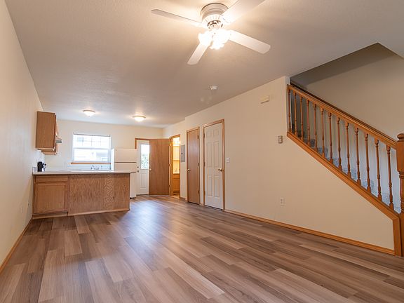 This 960 sq ft unit features vinyl flooring, air conditioning on the main floor, and a spacious open living and kitchen area. The main level includes a half bath, closet storage, and interior access to the attached garage. Upstairs, you'll find two well-sized bedrooms with ample closet space and a shared full bathroom. The front bedroom includes access to a private balcony, perfect for relaxing. The garage includes a large laundry/storage room which provides private parking and washer/dryer hookups.