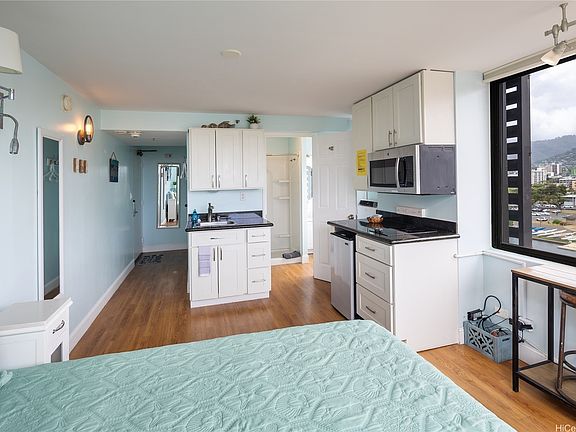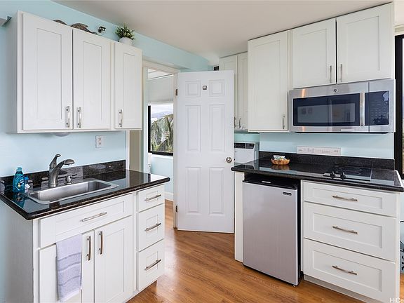 Investor's Dream! Turnkey, fully updated and furnished corner unit with amazing Diamond Head, mountain and canal views. Successful Airbnb short term rental property with existing reservations. Kitchenette features granite counters, two burner cooktop and stainless steel appliances. As an extra bonus, beautiful furniture, bed, TV etc. all included in the sale. Spacious pool deck with pool and hot tubs, BBQ area & fitness center with parking available. Perfect for vacation rentals. Bring your offer today!