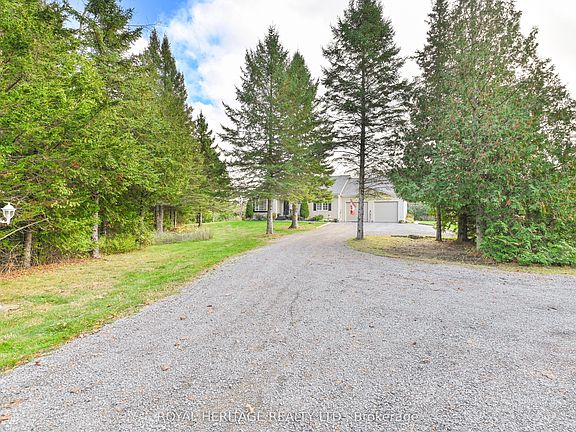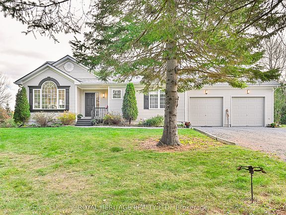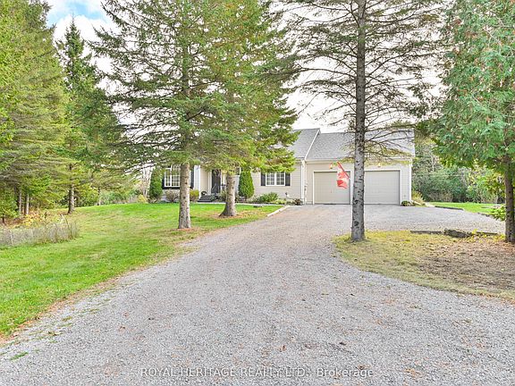 Nestled among mature trees and rolling hills, this custom-built bungalow offers the perfect blend of comfort, privacy, and natural beauty on over 5.5 scenic acres. Step inside to a bright, vaulted great room featuring gleaming hardwood floors, a spacious dining area ideal for family gatherings, and a large entertainer's island overlooking the inviting sunroom lounge. Enjoy your morning coffee or evening stargazing from the deck and screened gazebo-a serene escape surrounded by nature. The main floor features a spacious primary bedroom with double closets, a beautifully appointed shared main bath, and a generous second bedroom. Convenient main floor laundry and mudroom provide direct access to the oversized, insulated garage-perfect for hobbyists or extra storage. The finished lower level offers incredible flexibility with in-law or guest suite potential. The L-shaped family room includes a sunny sitting area and a walkout to the yard, plus a third bedroom with ensuite access to a full 3-piece bathroom. A large storage room and utility space complete this level. Outside, enjoy your own private retreat with mixed woodlands, a meandering creek, and endless opportunities to explore. The area offers beautiful trails for walking, ATVing, or snowmobiling, as well as nearby lakes and rivers perfect for boating, canoeing, and kayaking.