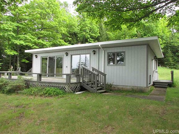 120' of beautiful lake front along the shores of Lake Michigamme, 1 bedroom, 1 bath cabin. Front and side decks, pole building and removable dock. Free standing fire place in the living room. Removable dock. Great lake for boating, kayaking and fishing.