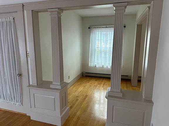 Large, spacious rooms of this second floor duplex. Living room, dining room with built in china cupboard, small office or reading room, 2 bedrooms, kitchen and bath with tub and shower. Hardwood floors throughout, new cork flooring in kitchen and bath. Walk-in storage room off the kitchen.