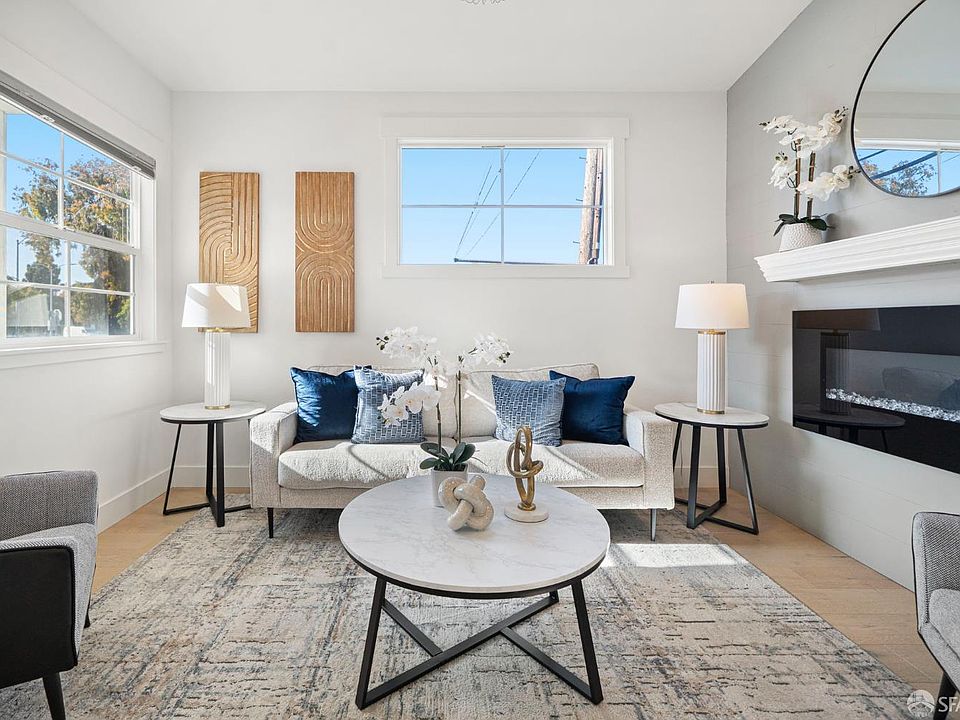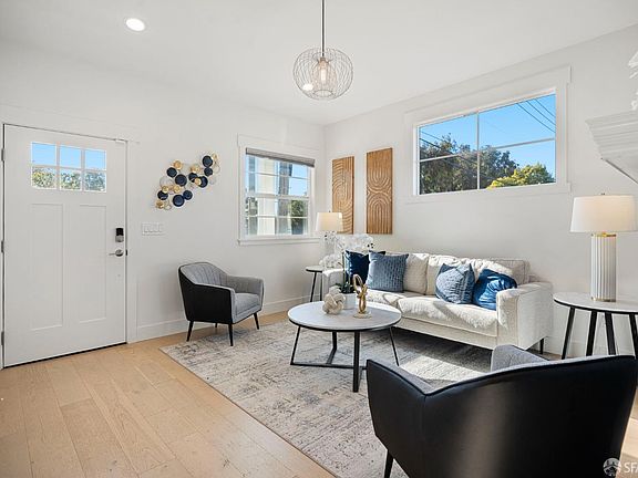 Modern farmhouse style meets city convenience in this 6-year-old single-family home in the heart of El Cerrito. This flat bungalow offers hardwood floors, abundant natural light, and a smart layout with an updated kitchen and bathrooms. The home features 4 bedrooms and 3 baths, including a spacious primary suite with a gorgeous bath and large walk-in closet. The kitchen stands out with custom shaker cabinets, quartz counters, high-end stainless steel appliances, and a dining area that opens to the backyard through sliding doors, perfect for entertaining. Adjacent is a laundry closet with side-by-side washer and dryer for added convenience. A cozy living room with an electric fireplace creates an inviting gathering space, while engineered wood flooring flows throughout. Other highlights include new fencing, LED recessed lighting, a fire sprinkler system, and a sharp paver driveway leading to a 2-car garage. A side yard adds outdoor flexibility for gardening, play, or pets. The location is unbeatable, walking distance to the BART, Lucky's, Trader Joe's, CVS, and a variety of restaurants. With parks and great schools nearby, this home blends modern design, comfort, and convenience in one complete package.