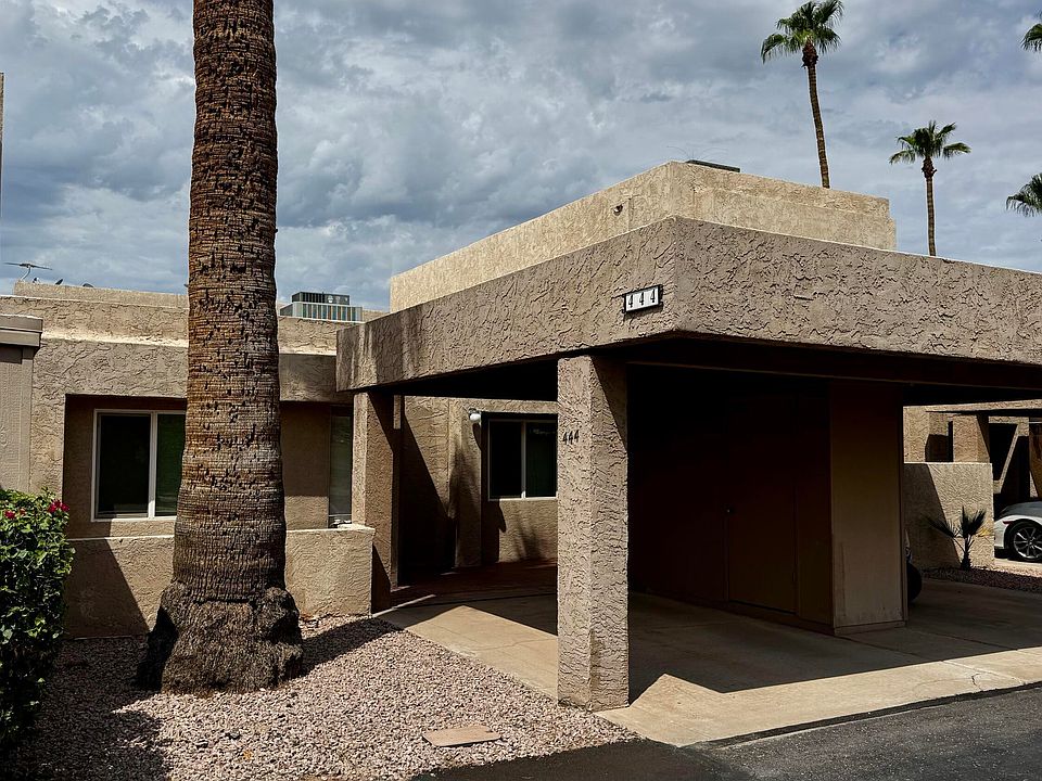 Wonderful property in the sought after community of Fountain of the Sun. Everything is within walking or short bike (or golf cart) ride from your front door. Short walk to the golf club and restaurant, activities center, pool and more. This single story (no steps) property is at the end of cul de sac for extra privacy and overlooks the golf course and driving range. 2 large bedrooms, 2 full baths, inside laundry and an open great room make this a very comfortable layout.