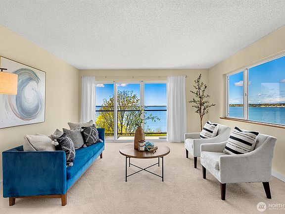 Soak in sweeping views of Bellingham Bay from this light-filled, end-unit condo at Spinnaker Reach. With windows on three sides, this 2-bedroom unit lives big and bright, offering stunning sunsets and a front-row seat to the waterfront. The open living and dining space flows effortlessly onto a private balcony/deck—perfect for morning coffee or evening wine. Enjoy access to great community amenities, including an outdoor pool and a game/rec room. Just steps from Boulevard Park, Taylor Dock, and all the charm of Fairhaven, this is Bellingham living at its best. Covered parking, elevator, recently remodeled bathroom and new carpet round out the package. A rare and wonderful opportunity!