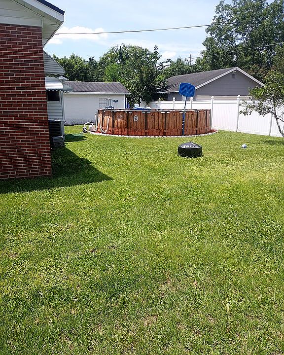 Beautifully maintained 3 bed/1 bath brick bungalow on a large, completely fenced in, nicely landscaped corner lot with producing citrus and peach trees. This home has been completely updated. Brand new roof, water heater, and hvac system. Brand new electric service and upgraded electric throughout the home. A bright front porch with 5 screened windows greets you as you enter, has new carpet and is perfect for plants or an exercise room. New stainless steel appliances in kitchen, updated lighting, new pergo flooring in kitchen, bathroom, and indoor laundry area. Brick fireplace in living room. Hardwood floors in living area, center hall, and bedrooms. All appliances and stacked washer and dryer convey. 1 car detached garage and private driveway. There is a new 22 ft above ground pool in the back yard. We've enjoyed it, but it can be taken down before purchase if buyer desires.