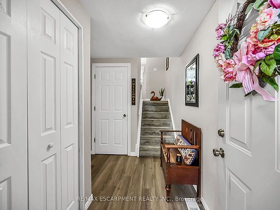 **Meticulously Maintained End-Unit Townhome** Pride of ownership shines the moment you step inside this move-in-ready gem! Featuring stylish vinyl plank flooring, brand new windows (installed just 2 months ago), and upgraded front and rear storm doors, this home offers both comfort and peace of mind. Finished basement. Gorgeous private rear patio with gazebo. Open concept from kitchen to dining room - breakfast bar. With 3 spacious bedrooms, one 4pc bathroom (and a roughed in 2 piece in basement), and convenient inside access to the single-car garage, its the perfect space for families or first-time buyers alike. Located in a fabulous West Mountain neighbourhood, you'll love being close to shopping, schools, parks, public transportation and everything you need. Don't miss this opportunity - let your homeownership journey begin here!