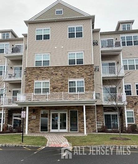 Great location! Bright open floor plan. High Ceilings, wide planked dark hardwood floors, neutral throughout. Gourmet kitchen with tall wood cabinets, granite counters, SS appliances. Perfect for entertaining. Washer/dryer, 2 bedrooms at opposite ends of unit w/bathrooms. Lobby on 1st flr w/elevator to 4th floor. 2 large indoor storage units and a 1 car garage. Clubhouse w/gym and TV room. Close to all major highways and corporate offices. Upscale living at it's best. Unit is on 4th floor.
