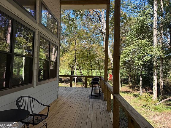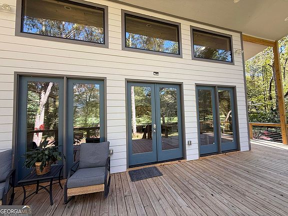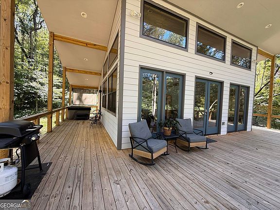 Welcome to one of North Georgia's best creekfront homes. This beautiful one-bedroom, one-bath home sits on 2.11 private acres with direct Tickanetley Creek frontage in Ellijay, GA. Unlike many properties, it is not in a subdivision, offering both privacy and freedom. The home boasts a wrap-around covered porch with a private hot tub, perfect for relaxing while listening to the creek. Inside, the floors are crafted from specialty natural woods, not man-made materials, and the eat-in kitchen features natural stone counters. The high-end gas stove is not only stylish but also functional during power outages. The bedroom has lofty ceilings, recessed lighting, and direct access to the hot tub. The bathroom offers a large tiled walk-in shower and a double vanity with marble counters to match the kitchen. For convenience, the laundry area is equipped with an all-in-one washer/dryer, maximizing space. Additional peace of mind comes from a whole-house generator, ensuring comfort even during stormy nights. Everything in this home is brand new, designed for modern living with timeless finishes. This property offers flexibility as both a private full-time residence and a proven investment, having been a successful short-term rental prior to listing. With its location, amenities, and unmatched creek frontage, this home is a rare find in the North Georgia mountains.