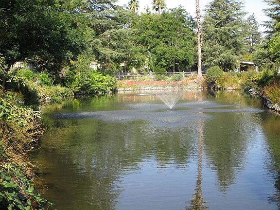 Absolutely beautiful home with a spectacular view of Ruby Lake! This is one of the best locations in this all-age park! There are so many amenities for every enjoyment from the pool, community center, gym and newly built playground for your children. Being on a cul-de-sac with a view of pond and the ducks from your front porch is so peaceful! The electric awning is fantastic, but indoors, you have AC, a fireplace, skylights, solar tubes, custom wood shutters and new paint! You will be so impressed with the warm colors, cleanliness and brightness of this home. There is also a huge storage shed! The owner is willing to part with most furnishings and she has lovely taste! This home can be used as a second home or for your vacation getaway! Being central to over the hill commute and 10 minutes to the beach is certainly a plus. Scotts Valley is a welcoming town with a high rated school system. Great price, great location, great home!