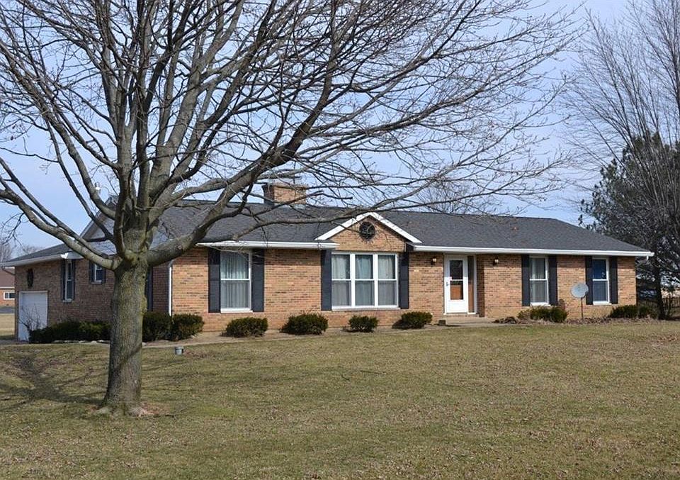 Large 4 bedroom brick ranch on 1+ acre lot, western Clark County. High efficiency furnace, replacement windows, solid wood 6 panel doors & huge basement! 2 car attached garage plus spacious 3 car detached garage heated, insulated, floor drains, work bench, cabinets & air line hook-ups plumbed around perimeter walls. Above ground splash pool stays! Fantastic opportunity! Convenient to WPAFB, Troy, Tipp City, Dayton/Beavercreek.