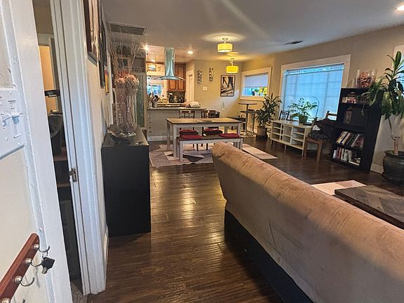 Open great room -living area through to kitchen - and a laundry room with washer/dryer. Parking is in front and side of house. (no street parking on H street)