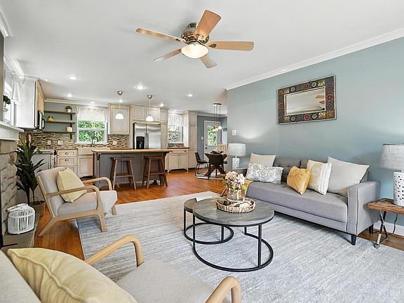Beautifully updated 4-bedroom, 2 full bath ranch situated on over an acre of private, fenced-in property! This spacious home features a stylishly renovated kitchen, finished walkout basement with a full bar, and two cozy gas fireplaces. Enjoy seamless indoor-outdoor living with a large, level yard perfect for entertaining. Additional highlights include a 2-car garage and generous living space throughout. A rare combination of space, updates, and privacy - don't miss this one!