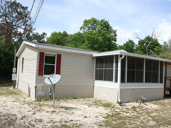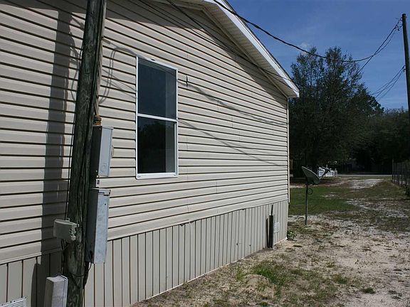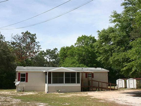You do not want to miss out on this double-wide mobile home in a quiet neighborhood. This property is just under half an acre that is located minutes to I-10. The home features a master suite that has a walk in closest and private bath. Large living room and dining room combo that is great for entertaining. Two additional bedrooms on the other end of the home with a shared bath. On the front of the home a Florida room style porch has been added, with two metal storage buildings in the yard. This home is being sold AS-IS and is needs some TLC. It will not last long at this price.