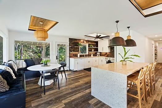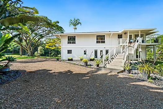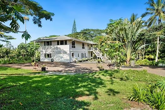 Discover this newly renovated 3 bedroom, 3 bath exquisite home equip with an office and stunning yoga room. The estate sits on 5.25 acres of tropical paradise in the heart of Kilauea, where luxury and tranquility meet. The property features a rich orchard with avocados, soursop, coconuts, breadfruit, and more, alongside a vibrant flower garden filled with beautiful gingers and exotic blooms.