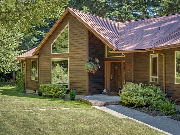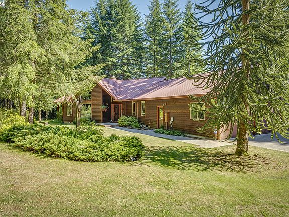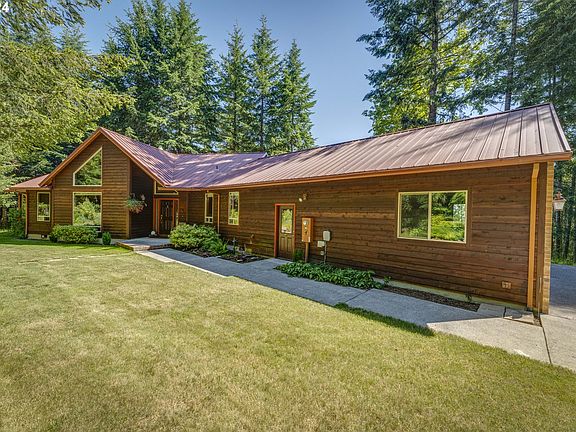 Are you seeking peace and privacy? Get away from it all at this gorgeous Northwest Contemporary style home. Custom built and never before on the market, this one owner home is situated on 39.9 acres and bordered on three sides by US Forest Service land. It is so quiet you can hear a pin drop! The single level home is highlighted by a floor-to-ceiling stone fireplace, an abundance of natural wood, soaring ceilings, and expansive windows designed to invite in the beauty of the Pacific Northwest. You will find the home perfect for entertaining, with big open spaces and a large multi-level 16x54 deck. The primary bedroom features a slider to the outdoors, as well as a walk-in closet and oversized bathroom with both a tub and a glass block shower. The second bedroom opens onto the deck, with a bathroom and laundry room nearby. Outbuildings include a 10x20 woodshed, 8x24 utility shed, and a king-sized chicken coop with a covered fenced enclosure. From the deck you can see the coast range in the distance, and hear Gordon Creek bubbling below. Removal of a few trees would open up an outstanding view! All acreage but the homesite is in timber tax deferral, keeping property taxes lower while allowing you to grow trees or harvest timber as you wish. Venture just a few miles up the road for hiking on Larch Mountain, or explore the many sights of the Columbia River Gorge National Scenic Area close by. A short drive from the highly rated Corbett schools, you can also enjoy easy access to I-84 and Portland or Hood River. Perfectly designed for full-time living or as a private retreat, this is a unique opportunity to own a one-of-a-kind sanctuary in an area of Corbett with no east wind. Shown by appointment only.