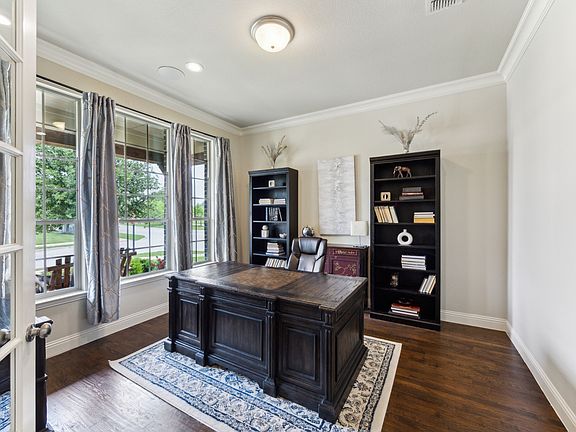 Welcome to your dream home in the highly sought-after Windsong Ranch! This gorgeous north-facing home is located directly across the street from the amazing Windsong Ranch amenities! This stunning Drees Custom Homes Oakley II model home features a large entertaining space with intricate floor-to-ceiling centerpiece, beautiful kitchen with island, elegant office, formal dining room, master suite located to the southwest, and an upstairs entertainment area with game room and media room with two levels of seating. The backyard is fully turfed and has beautiful peach trees! You'll have access to the award winning Windsong Ranch resort-style amenities, including the 5-acre Crystal Lagoon, community pool, tennis, hike & bike trails, dog park & over 600 acres of open space. Enjoy the Lagoon Life, fantastic events, award-winning events staff, and other amazing amenities in DFW's most social neighborhood! Windsong Ranch is in prestigious Prosper ISD and has no MUD, no PID, and a low 1.96% tax rate!