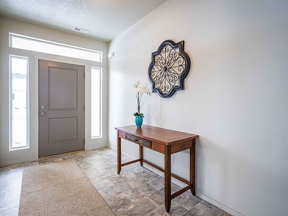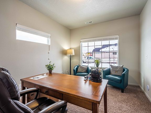 This two story home features an extended covered front porch, a covered 12? x 10? back patio with gas stub forBBQ near back door, and is pre-wired for air conditioning. Main floor includes 9? ceilings throughout, a storage/mudroom with closet off garage, an office, a formal dining room, a craft/flex room off the kitchen, and a paddle fanand gas fireplace with wiring for wall mount TV above at the family room.The kitchen features Whirlpool® stainless steel appliances*, Beech Sonora style cabinets in Kodiak stain, Estate2 ¼? crown molding on upper cabinets, Moen® Arbor pullout faucet, Swan® single bowl top mount porcelain sink,an island, and a pantry with Chalkboard door.Second floor includes a large loft area, guest bedrooms with walk-in closets, full guest bathroom with double sinks,and the laundry room. The master suite features a three 2? x 2? box windows, walk-in closet, double sinks, Moen®Eva faucet collection, a garden tub with window above, separate 4? shower with glass door, and a linen closet.*Does not include refrigerator.