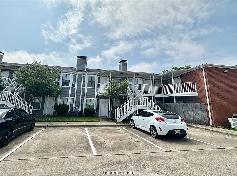 1 bedroom 1 bathroom upstairs Village on the Creek Condo located on the Texas A&M bus stop. Features include recent paint and carpet and an oversized bedroom with a walk in closet. This condo is located blocks from Texas A&M University. Enjoy the covered back patio, beautiful view of the court yard from the balcony and convenient location. Refrigerator is negotiable.