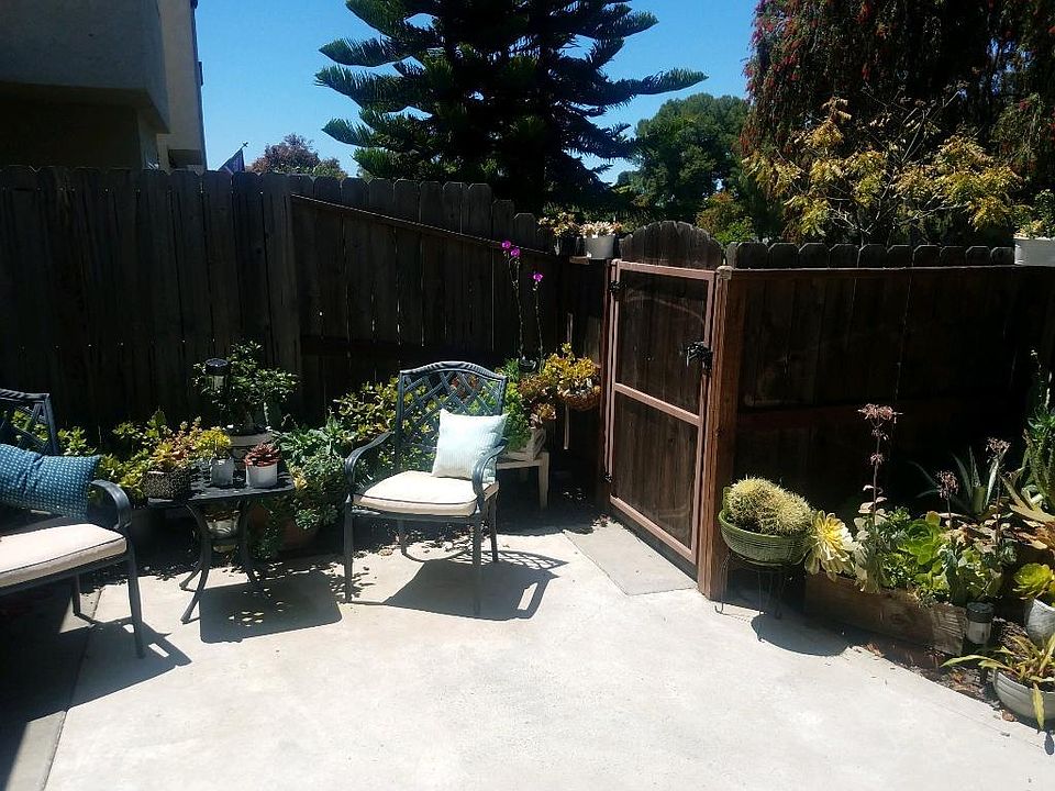 ~ Private entry gate/fence that leads to the entry door and sliding door on the patio.
