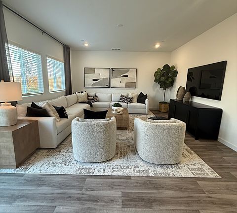 Beautiful 5-bed, 3.5-bath new home--features an open-concept kitchen with island, stainless appliances, window blinds, a guest suite downstairs, loft, and spacious owner's suite. Equipped with energy-efficient full-capacity solar panels and Tesla Powerwall, offering lower utility costs, reliable backup power, and sustainable living. Located in the desirable Corinthalyn community within top-rated Clovis Unified schools Reagan Elementary, Reyburn Intermediate, and Clovis East High. Ideal for families or professionals seeking modern comfort and convenience. Move-in ready with a friendly neighborhood vibe and ample room to live, work, and play.