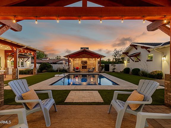 Come see this stunning custom home on approximately a .87 Acre Lot with spectacular Camelback Mountain Views. This 6 bed, 5.5 bath, 5 car garage custom property is not just a luxury property, it is a home. You can have get-togethers with 20+ cars parked on the property with a paver circular driveway and parking in front of main 3 car garage, plus additional side parking behind RV gate that spans the length of the property back to the additional 2 car garage. Plenty of Room for parking an RV, Boat, Toys, and more. Enjoy the lighted ''Sport Court'' and picnic area plus garden areas and room for more in the back if desired. The design of this home surrounds the private pool area and custom brick cabana with 3 sliders all opening into this spectacular outdoor space. The cabana features a built-in gas fireplace, custom brick work and matching wood beams that match the exterior of the home. Enjoy the paver patio areas for entertaining space, birthday parties, and more, plus a nice built in BBQ right off the kitchen area. Or just relax under the ramada with Camelback views as you read your favorite book. As you step inside, you will be greeted by soaring vaulted ceilings, and warm tones throughout the home. The kitchen features Thermador Appliances including 2 dishwashers, 3 ovens including the Gas Range and Wall Oven, built in Microwave, R/O, a huge island, breakfast bar area, a separate wine refer and a beverage refer, with space for your favorite coffee and tea bar. Enjoy custom stone/marble throughout the home including kitchen, baths and baths flooring. There is a separate living room and formal dining area, plus a large family room off the kitchen, plus a separate game and media room for entertaining as well. The master suite features its own custom gas brick fireplace, marbled decking for oversized tub area, walk in shower, his and her vanities, and his and hers walk-in closets. 4 additional bedrooms have their own on-suite baths as well for kids and guests. The 6th bedroom or office is conveniently located in the home. There is also a built in fenced dog area with turf. This home includes two tankless water heaters, carbon filtration system and R/O. There is so much to enjoy being located within walking distance of the Phoenician golf resort, about 1.3 miles from Scottsdale Fashion Square and all the restaurants close by, walking distance to Camelback Cholla Trail, and also located in the highly desired Hopi Elementary and Arcadia High school boundaries, while offering lots of private school options close by as well. You are also only 4 miles from the Biltmore and about 5 miles from Sky Harbor Airport for any additional business or travel needs. This property has so much to offer that cannot be summarized in this listing; so come see this stunning well-designed custom property in the heart of Arcadia.