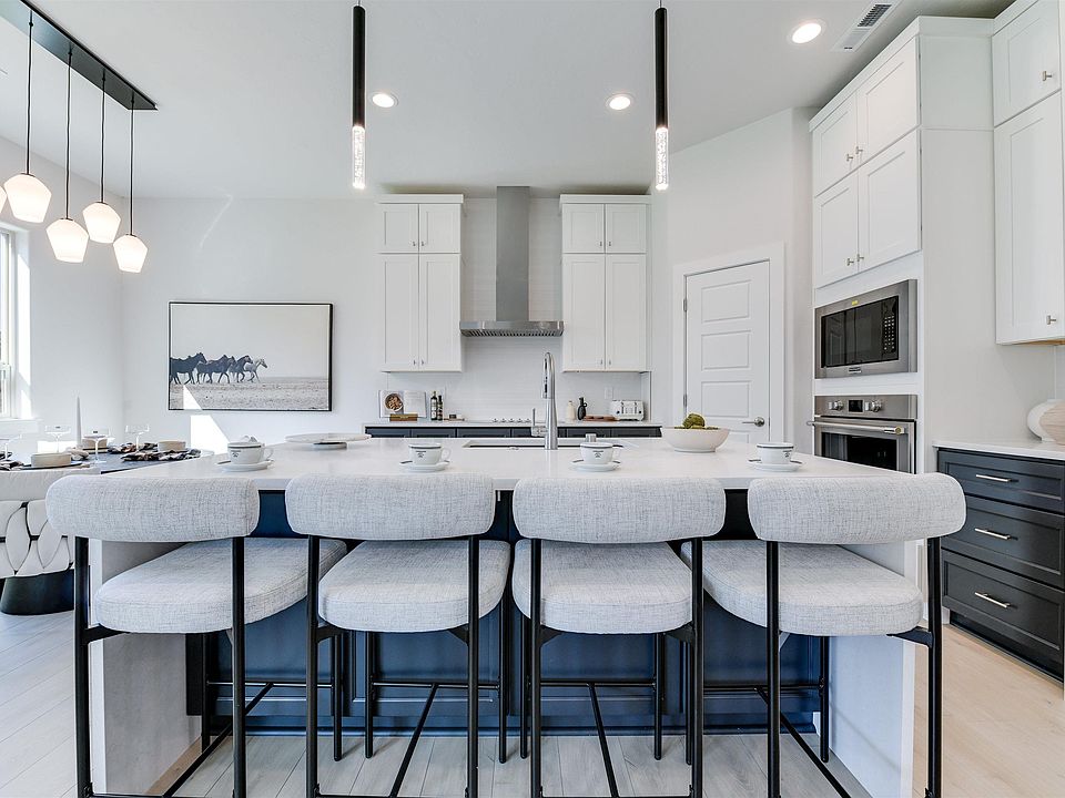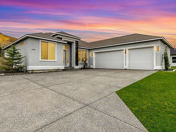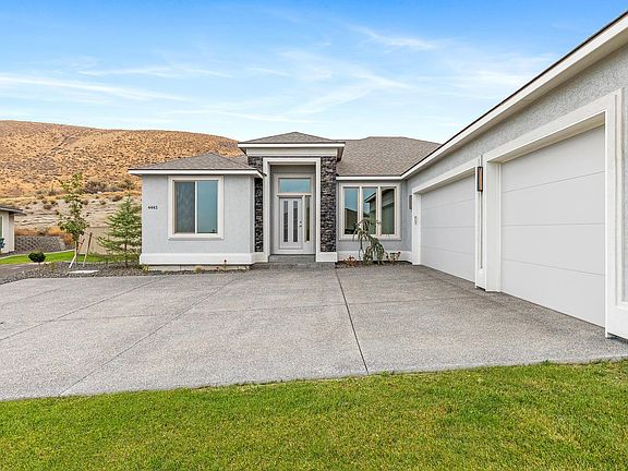 MLS# 287463 Welcome home to your stunning Infinity Home located in the final phase of White Bluffs. This beautifully designed residence features 3 bedrooms plus a den, a full stucco exterior with rock accents, and an exposed aggregate driveway and walkway leading to an elegant front entry with a transom and side light window for added natural light. Inside, luxury vinyl plank/SPC flooring flows throughout the entry, great room, kitchen, dining, den, and hallways. The spacious great room offers a gas fireplace with a custom wood detail finish, a recessed area for TV mounting, and a smurf tube for clean cable management. The home is pre-wired for a 5.1 surround sound system in the great room, plus ambient speakers for the patio and primary suite. The gourmet kitchen showcases stacked cabinetry, quartz countertops with a waterfall island, full tile backsplash, professional stainless-steel appliances, and a corner pantry. All bathrooms and the laundry room feature slab quartz counters and tile flooring. The luxurious primary suite boasts crown molding, a coffered ceiling with accent rope lighting, a soaking tub, tiled walk-in shower, double vanity, and a spacious walk-in closet. Enjoy outdoor living with a covered patio, gas BBQ hookup, full landscaping, underground sprinklers, and full fencing. Thoughtfully designed with high-end finishes and functional details throughout, this home is a must-see!