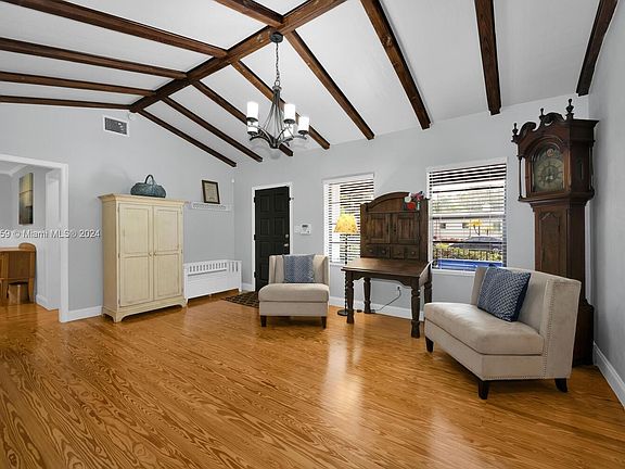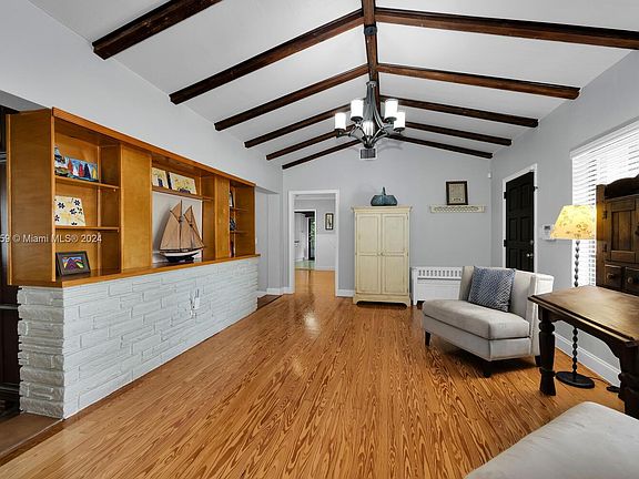 Lovely, meticulously maintained home, just a short walk or bike ride to world class shopping & dining in downtown Coral Gables. Lush tropical landscaping surrounds this “Little Gables” residence which features wood/tile flooring, vaulted/wood plank ceilings + updated kitchen & 2 baths (2015). Additional updates include: all appliances (2016), roof (2020) & 3 AC units for zoned cooling. Smart Home features: Wi-Fi programmable thermostats, security system & digital TV antenna. A rare walk-in basement offers 275’ of space for storage, wine cellar, etc. Enjoy outdoor living on the covered patio & large fenced yard w/room for a pool. Ample parking for 6-8 cars + additional parking behind the home. Ideally located just 10 mins. to MIA & 2 miles to SR 836 for easy access throughout S. Florida.