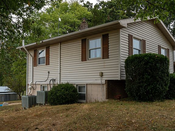 A beautifully 3-bedroom, 1.5-bath split-level home situated on 25 acres just off Hwy 63. The property offers endless possibilities with a 40x90 concrete slab--ideal for future homesteading with family, starting a business, or building a machine shop or barn. Additional features include cross-fencing, a 24x60 machine/tractor/hay shed with a concrete floor, and a separate animal shed with divided pens. Inside, you'll find real hardwood floors, a tiled fireplace, a dedicated dining room, and a kitchen with stainless steel appliances. The finished walk-out basement includes a half bath and a wood-burning stove, while upstairs you'll find three carpeted bedrooms and a full bath. Outdoors, enjoy a screened-in porch and a stamped concrete patio, perfect for relaxing or entertaining. Directly across the road is a conservation area, adding to the peaceful surroundings. If this sounds like your dream property, schedule a showing today!