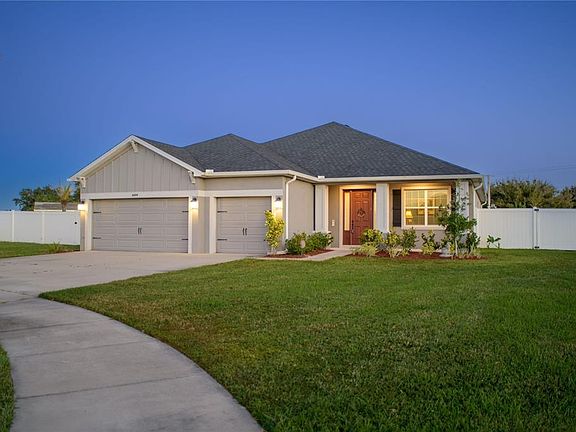 Don’t miss this beautiful home nestled in the exclusive Devinshire Estates, a small 27 house neighborhood in the heart of Plant City. This 2021 Highland Homes built beauty boasts four large bedrooms, three full bathrooms and a three car garage on .6278 of an acre in a quiet corner waiting for its new owners to call it home. The minute you step inside, you are immediately greeted by the den, perfect for a sitting room, formal living room, library or home office. Past that you will find yourself in the open and light and bright, living, dining and kitchen spaces, all open to each other for the perfect entertainer’s paradise. The kitchen is the heart of the home, with beautiful granite countertops, ample cabinets, stainless steel appliances and an oversized walk-in pantry located in the large laundry room just steps away. Surrounding the beautiful kitchen are four large bedrooms and three full bathrooms, including a Jack and Jill bathroom between bedrooms two and three. The primary bedroom has an en-suite with dual sinks and oversized walk-in closet with beautiful custom closet organizer installed. For the hobbyist at heart, the three car garage has custom epoxy flooring and a mini-split AC, making it the perfect workshop, gym space, climate controlled storage, or additional hang out space. If that’s not enough, in the large, fully fenced in backyard there is a large paver patio for entertaining, and you will also find a 12x30 foot shed (pre-wired for electricity) with so many possibilities. The Low-E Double Pane windows allow you to enjoy the natural light without feeling the added heat. The property also has a 50-amp hook up for a generator or RV and a whole house water filtration system with iron removal. Owners also opted for upgraded whole house radiant barrier during build to keep electricity costs down! Located in Plant City just down the street from zoned schools, shopping, dining and so much more, this is one you won’t want to miss!