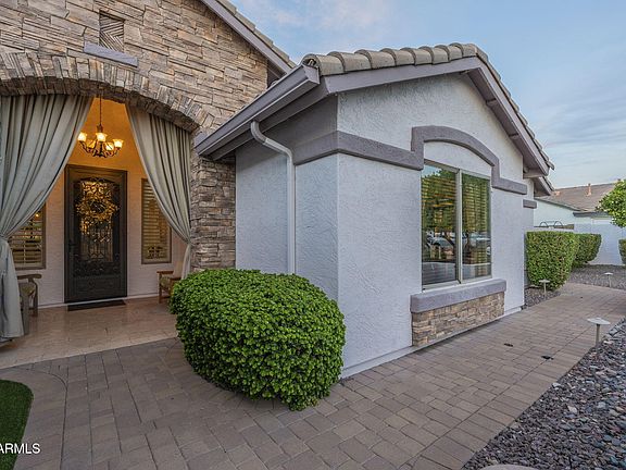 Impressive home on over 1/3 acre home located in The Groves area of NE Mesa. Enter into the foyer overlooking the living/dining rms & den w/ large bright windows over looking the resort like backyard perfect for entertaining. Family room w/ gas fireplace, kitchen showcasing a 48'' Bertazzoni oven & stunning breakfast nook all surrounded by windows is located in the center of the home. 3 bedrooms split from the master bedroom. 2 large walk in closets in Master bath along w/ soaking tub and walk in shower. Exit to the backyard from master bedroom or family room. Large covered patio. Built in gas BBQ, fire pit, projector/movie screen & round concrete table/bench all under Ramada w/ special lighting, ceiling fans & misters, next to putting green. Lots of citrus/shade trees, park like feel