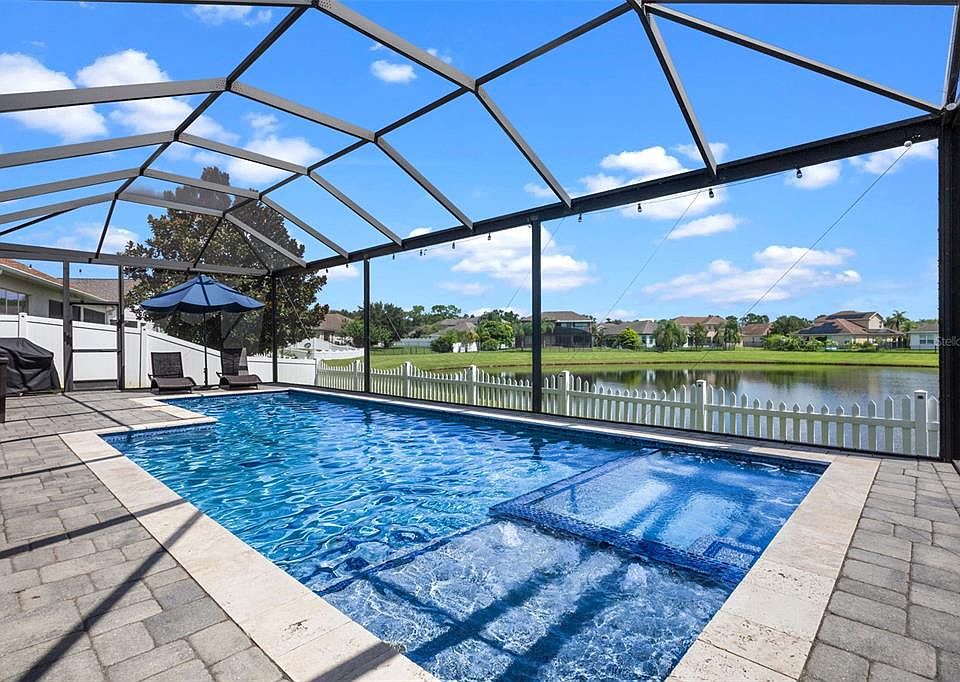 With a $100,000+, huge custom pool, water view and a fully owned whole-house solar system, this 4-bedroom, 3-bathroom home with office and 3-car garage is packed with upgrades that set it apart. From its remarkable curb appeal and welcoming entryway to its tranquil pond views front and back, every inch of this property has been carefully considered to deliver comfort, efficiency, and an outdoor living experience rarely found in homes of this size. The floor plan balances style and function. A foyer accented by crown molding and decorative arches leads into a cozy front living room with fireplace and mantle, which flows into the formal dining room for elegant entertaining. Just off this space, the office is perfectly situated for work or quiet focus. Toward the back of the home, the family room connects seamlessly to the kitchen and breakfast nook, all framed by large windows showcasing the pool and pond. The kitchen has been updated with a new refrigerator, microwave vented to the exterior, and dishwasher (all 2023), plus a washer (2021), a hybrid water heater (2020), and a brand-new interior and exterior AC system (2025). The primary suite captures sweeping views of the pool and pond, with the ensuite bathroom offering a private retreat complete with adult height granite counters, a soaking tub, a separate shower, and a private water closet. Secondary bedrooms are generously sized, and bathrooms also feature granite finishes, keeping a consistent level of quality throughout. Outdoors is where this home truly shines. The expansive 500-square-foot covered patio opens to the showpiece salt water pool built with PebbleTec finish, LED lighting, smart controls, a four-foot shallow end, a six-foot deep end, and a sunken jacuzzi. Both the pool and jacuzzi are electrically heated, ensuring year-round enjoyment. Fully fenced and positioned to take in breathtaking sunrises, the backyard is a destination of its own. Beyond the finishes, the home’s upgrades deliver peace of mind and efficiency. The exterior was freshly painted in 2023 with high-quality Sherwin Williams paint, while a smart sprinkler system and alarm system add convenience and security. The owned solar system is a standout feature, bringing the electric bill to under $100 during the hottest Florida months and an incredible $0 for the rest of the year. Water quality is also a highlight, with a fully owned whole-house water filtration system plus a reverse osmosis system at the kitchen sink, delivering clean, crisp water throughout the home. Combined with the nearby new fire station that helps reduce insurance costs, the savings and lifestyle here are as impressive as the upgrades. Set within a gated community offering a pool and playground, this property also boasts an exceptional location close to schools, with quick access to 417 and the Turnpike. Orlando International Airport and Lake Nona’s Medical City are less than 15 minutes away, making this a home that combines everyday practicality with luxury living. 4445 Biscayne Breeze Way is more than just a house—it is a showcase of efficiency, comfort, and outdoor living at its finest, highlighted by one of the most magnificent pools you’ll find.