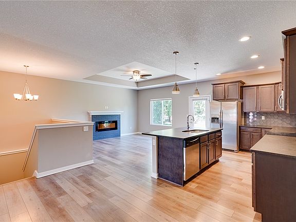 Gorgeous ranch townhomes for sale! Looking for options? We have 2 bed/2bath, 3 bed/3 bath, and 4 BED/3 FULL BATH townhomes, built between 2018 and 2019 but this one is special because it backs to a park, the community garden and has a walk/bike trail leading you there. This stunning end unit features 3 beds/3 baths with an open concept floor plan, split beds on the main level, LVP floors throughout the living area/kitchen, black granite countertops, a fireplace, and a dining area in addition to a large breakfast bar. The laundry room is conveniently located on the 1st floor. The owner's suite has tray ceilings, a private bath, a walk in shower and closet. The lower level has another large living space, a full bath and a bedroom with double closets. It still has a huge amount storage space. Enjoy time relaxing on the covered front porch or get some some sun on the back patio. You'll be wowed by the curb appeal with the stone pillars and contemporary built architecture. Remaining tax abatement! All appliances stay. Association covers lawn care, snow removal, irrigation, and exterior maintenance. Make Beaver Cove your next home!