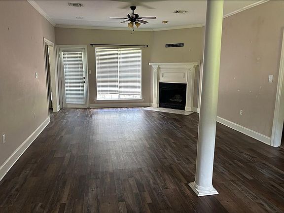 Well-maintained 3 bedroom, 2 bathroom brick home on a spacious lot with mature trees. Features include an open living area with LVP flooring, gas fireplace, and large windows for natural light. The kitchen and dining spaces flow easily for everyday living and entertaining. Owner's suite with private bath, additional bedrooms ideal for family, guests, or office. Two-car garage with a wheelchair ramp entering the home, covered entry, and large backyard with plenty of room for outdoor activities.